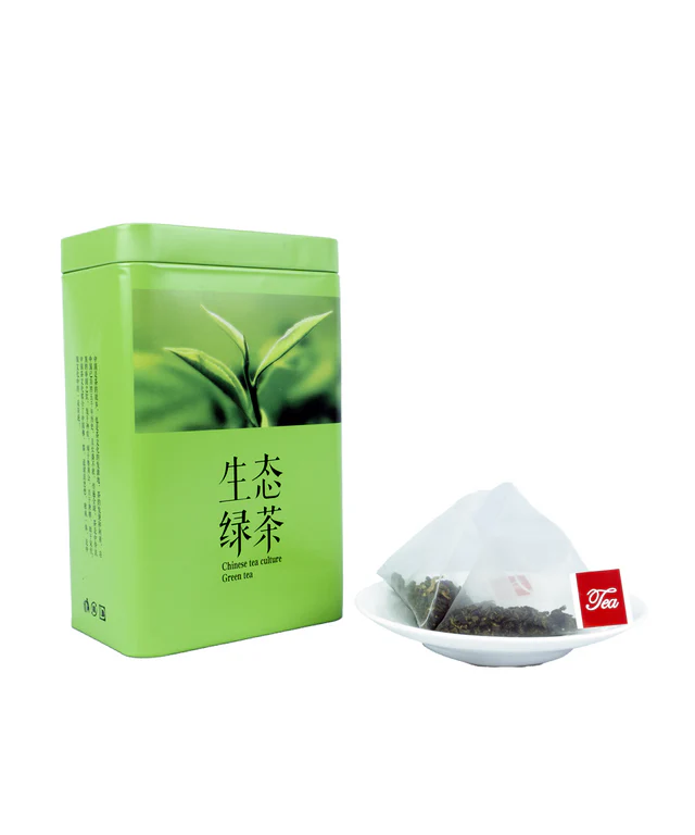 • Whole leaf green tea sealed in pyramid tea bags